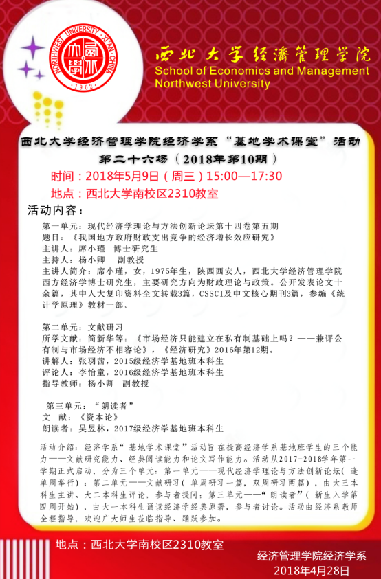 太阳集团城官网1407太阳集团城官网1407经济学系“基地学术课堂”活动第二十六场(2018年第10期)