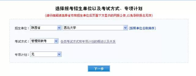 (1)选择报考招生单位以及考试方式